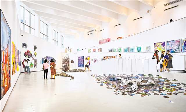 5月26日,第二十届“开放的六月——四川美术学院艺术游”2024毕业作品展在四川美术学院大学城校区美术馆开幕,不仅展出上万件作品,还举办美术馆之夜、公共美育周、特色主题日等系列活动,搭建起文化艺术展示、交流、体验、鉴赏、消费的平台,让市民沉浸式体验视觉之美、空间之美、生活之美。图为观众参观本科生毕业展。