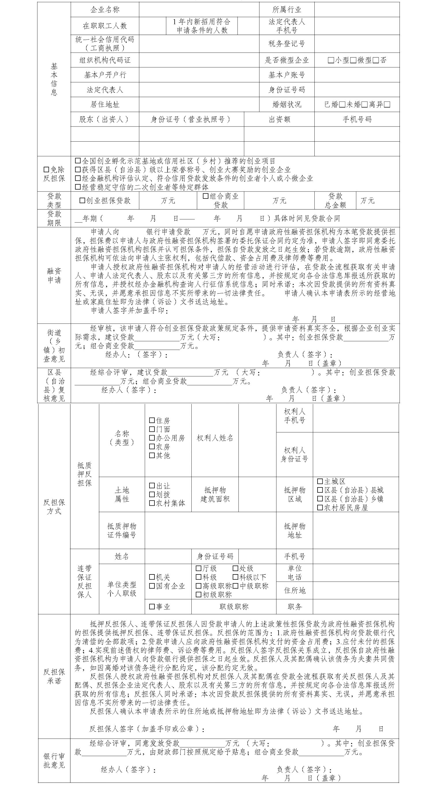 申请创业担保贷款的个人或小微企业应如实填写《创业担保贷款申请表》(附件1),由当地人力社保部门进行资格审核,通过审核的个人或小微企业,向经办银行、经办担保机构提交申请。经办银行、经办担保机构收到申请后,开展贷前保前审查,对符合相关贷款和担保条件的,与其签订贷款和担保合同。